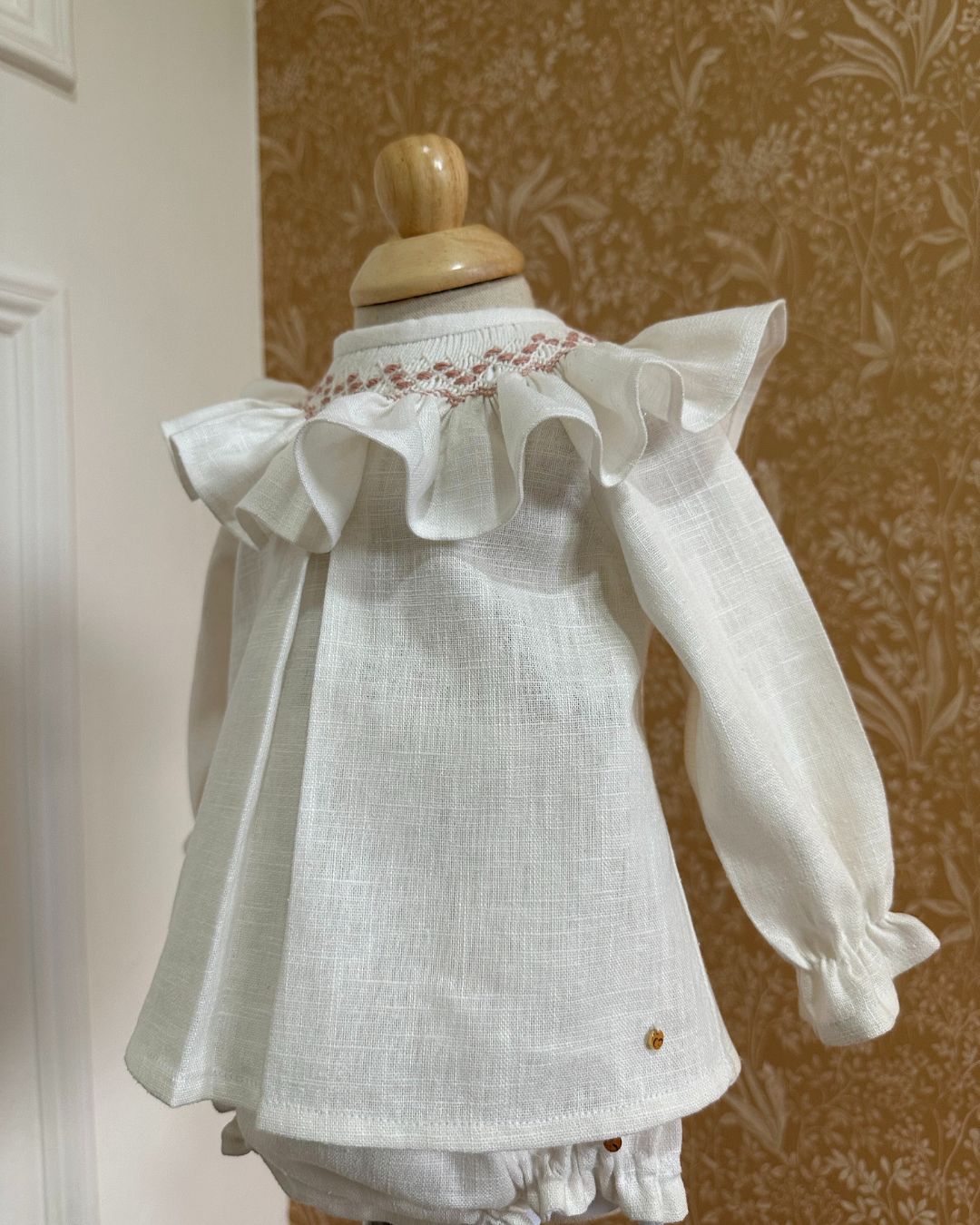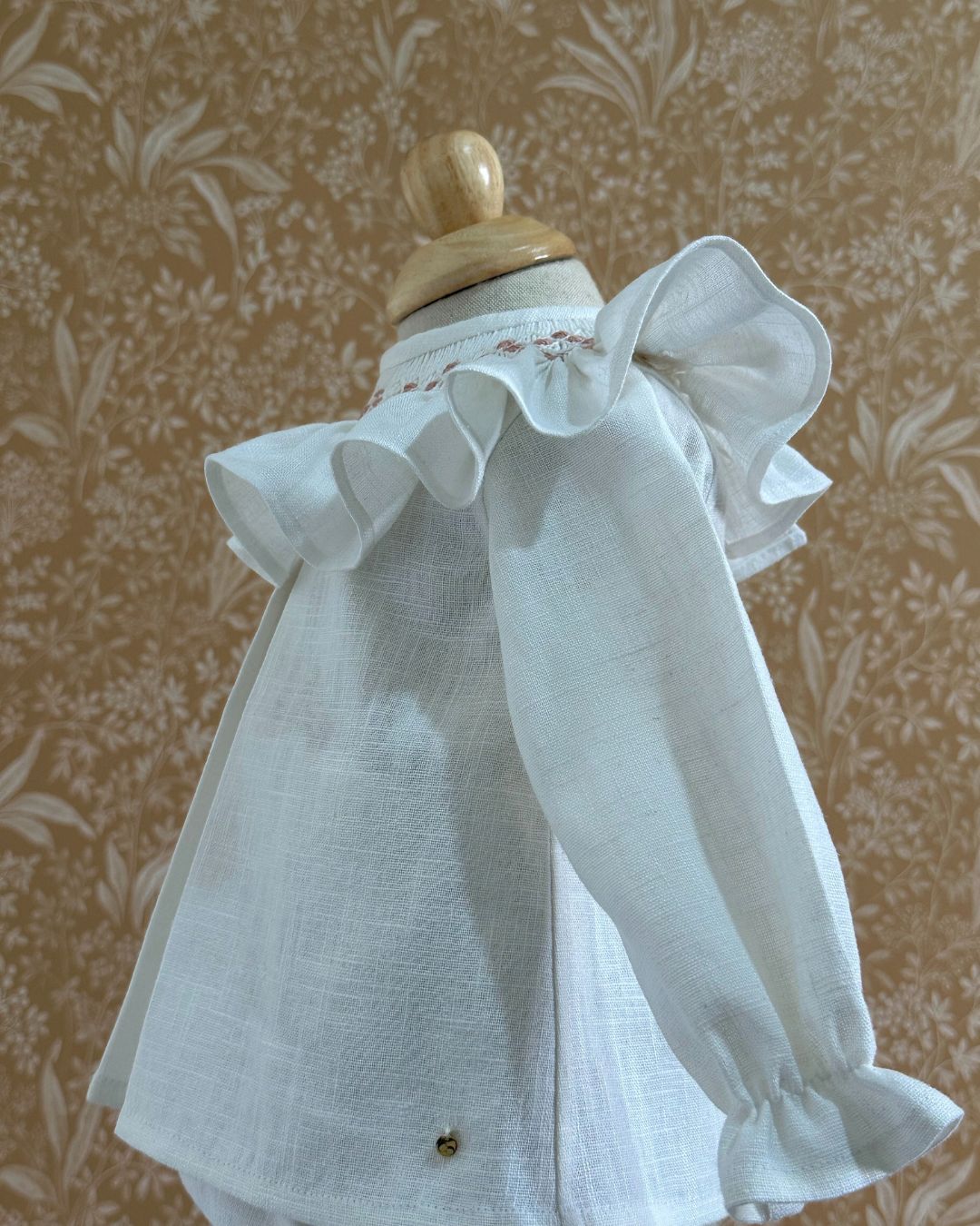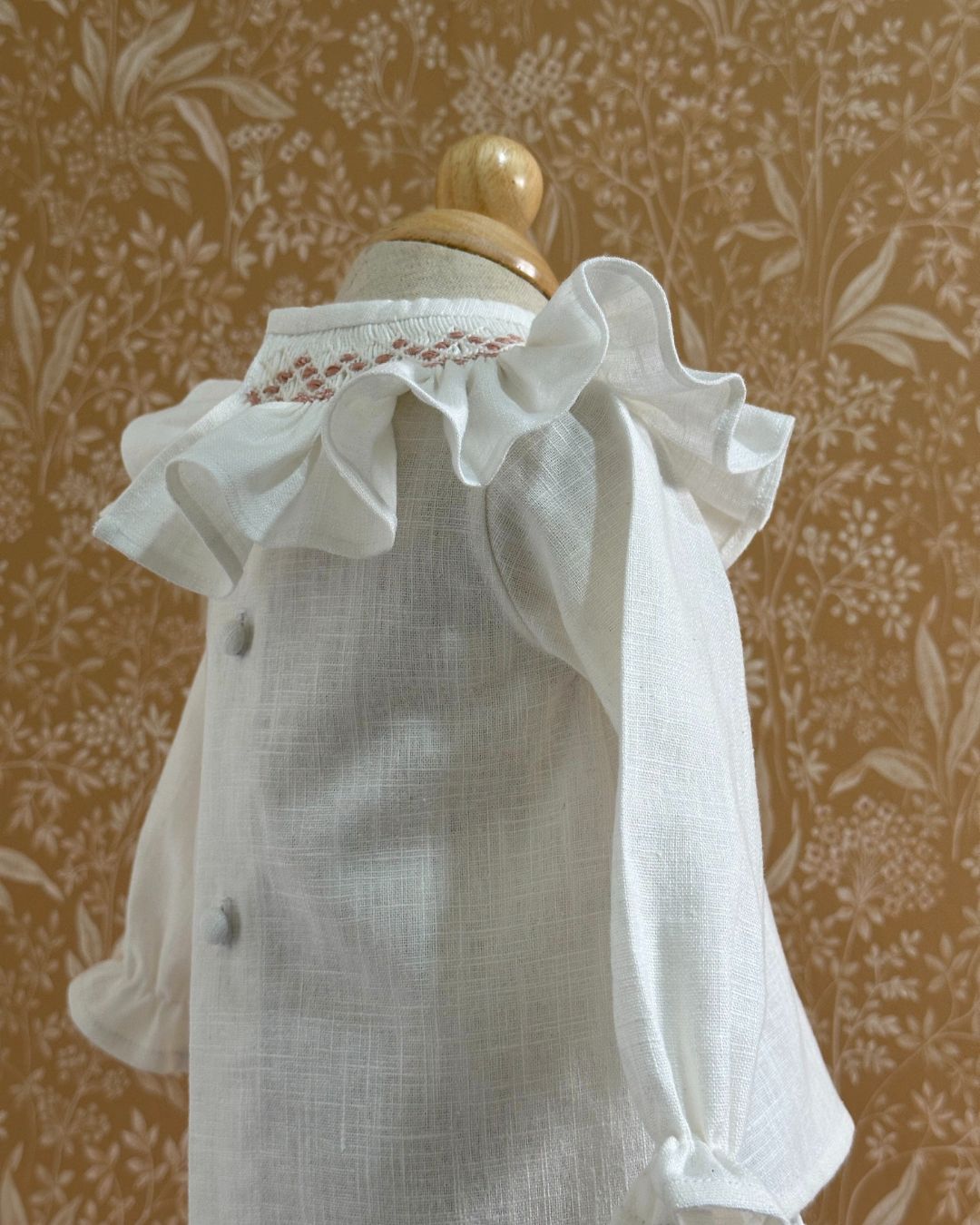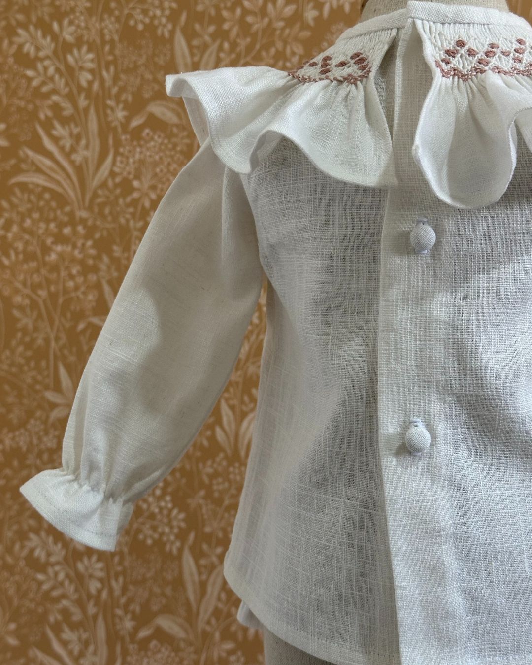 Estas prendas han sido elaboradas con cuidado y atención de manera artesanal, utilizando lino orgánico 100% para el tejido exterior y algodón orgánico 100% para el forro interior y etiquetas. Cuenta con gomas elásticas suaves en el contorno de la cintura, las muñecas y en las piernas para brindar sujeción sin dejar marcas.